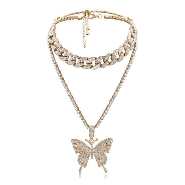 This absolutely stunning Pink butterfly beats all other jewelry out there. It comes with a beautifully designed butterfly necklace detailed with CZ hanging by a tennis link and connects to a cuban link choker that is a dream come true for all the cuban chain fanatics out there.